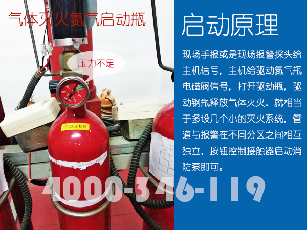 1)检查每个灭火剂瓶组和驱动气体瓶组的压力,压力表的压力指示值应在绿色区域内。